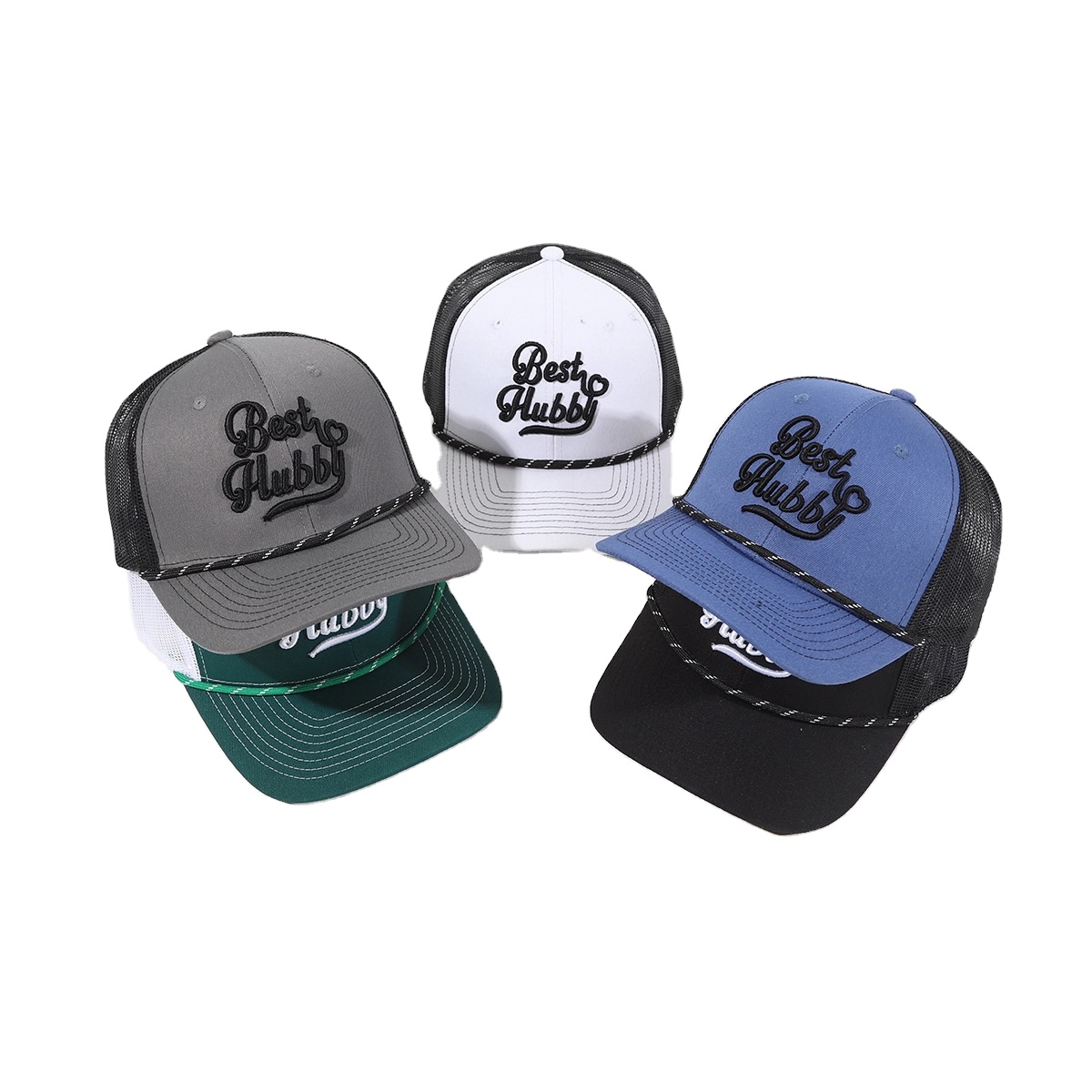 Gorra de camionero de gamuza personalizada de fábrica con malla bordada en 3D Gorra bordada en 3D directa de seis paneles